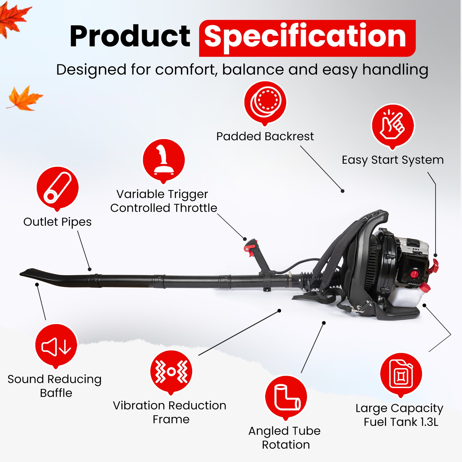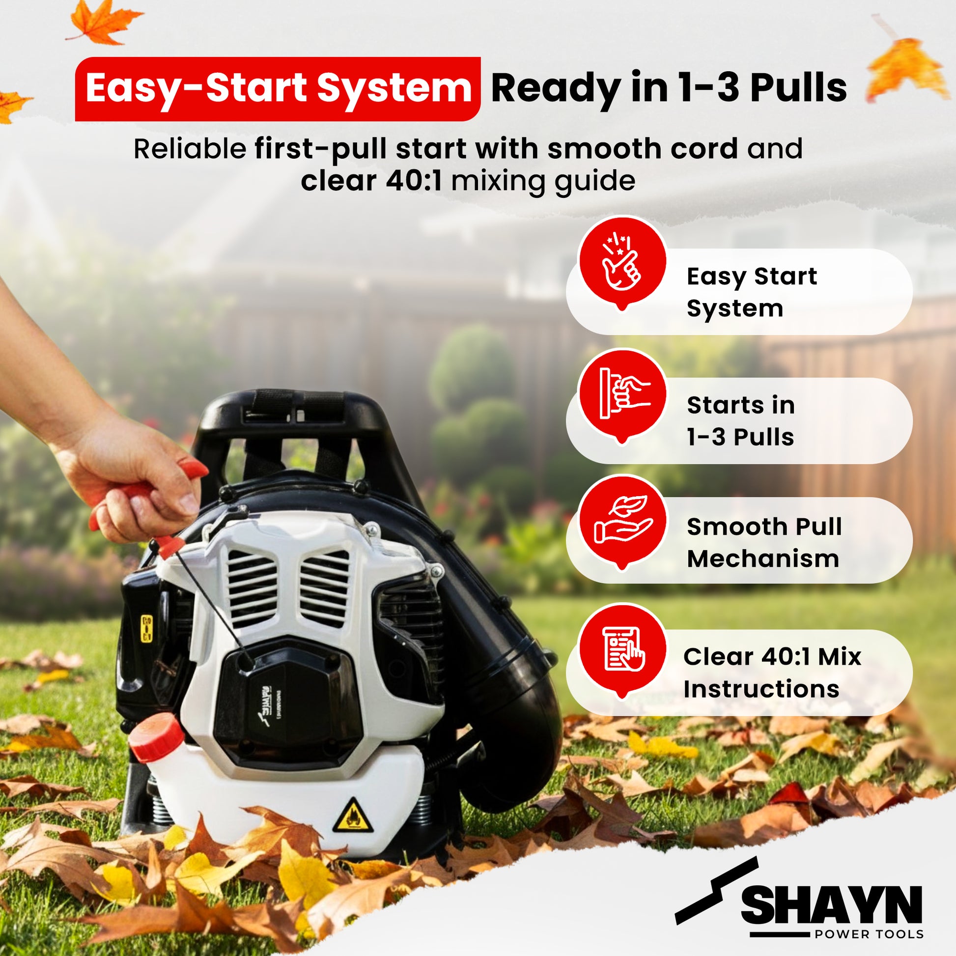 - ✅[EASY START 52CC PETROL BLOWER] – Tired of petrol leaf blower that won’t start? Our 52cc backpack petrol blower uses an improved easy-start system, smooth pull cord and a simple 40:1 mix guide, helping it start in 1–3 pulls. Perfect for beginners and professionals, this powerful garden tool gets you working fast without the frustration common in many petrol leaf blowers.
